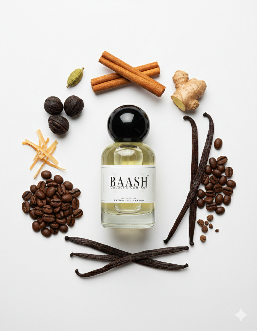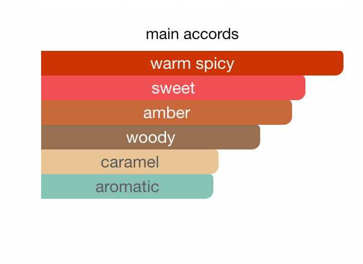 . Top note is Cardamom; middle note is Toffee; base note is Amberwood.